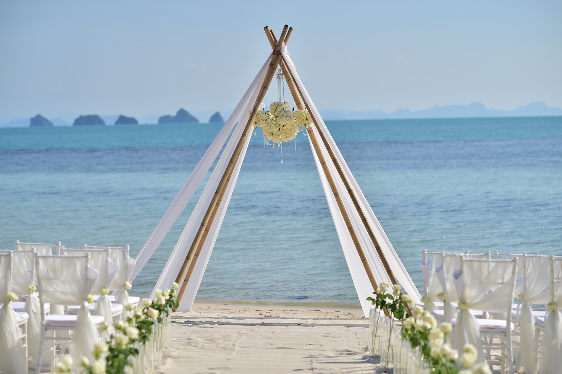Imagine, then, a beach wedding at picturesque Tonsai Bay - powder-soft sand beneath your feet, coconut palms swaying in the gentle breeze, clear blue skies overlooking the azure waters of the Andaman Sea and majestic limestone cliffs as a backdrop.